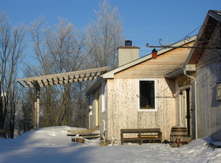 Lower level - studio apartment, 3 fixture washroom, kitchenette, with propane woodstove and shared laundry. Separate walkout entrance, driveway and parking.