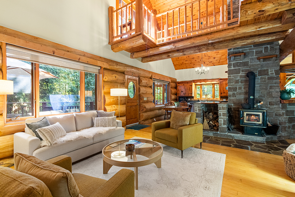Escape to your own private 20 ACRE sanctuary just 15 minutes from BVSC. Tucked at the end of a winding lane, this Scandinavian Scribe–style log home offers hand-hewn logs, vaulted ceilings, and well maintained grounds creating the perfect backdrop for APRES SKI evenings or quiet WEEKENDS AWAY.