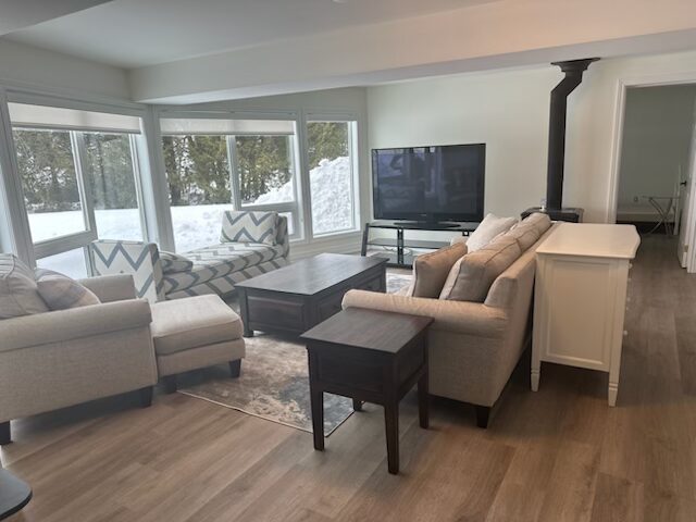 This very clean, open concept cottage offers 2 living rooms (one with 60 inch tv), 2 fireplaces (gas and woodburning), 2 balconies, open concept kitchen/eating area, 2 washrooms (1 with soaker tub and double sinks), 3 bedrooms (one queen bed and 2 double beds) and 1 larger room that accomodates 2 double beds and 1 single bed. Our cottage was completely renovated on the main level in 2024. Flexible with term (ski season, summer, full year). Please feel free to call Thul to discuss rent (negotiable) and additional details further! Thank you for your interest. Thul Cell: 416.697.8485 or thul.miles@royallepage.ca