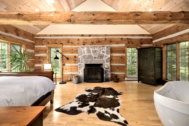 A stunning 2005 log addition adds warmth and character with a Rumford fireplace with limestone hearth, spacious primary bedroom with ensuite, and walk-in closet.