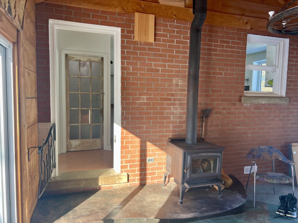 Upper level - 3 bedroom, 3 piece washroom, kitchen with propane stove, living room, dining room, breezeway with woodstove and large attached garage.